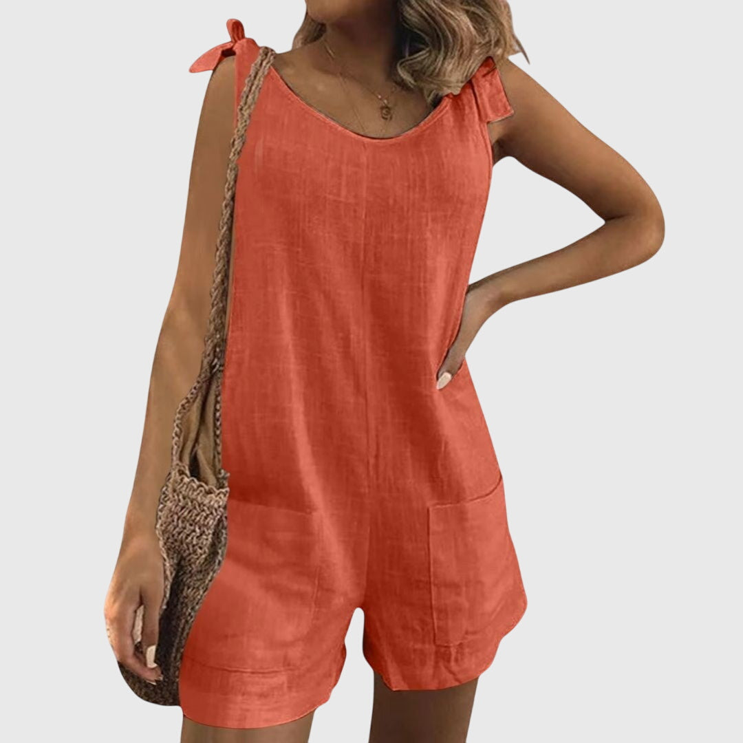האוברול של אמה משלב סגנון קיץ רענן עם נוחות שאין כמותה. עשוי מתערובת נושמת של כותנה ולינה, הוא מספק לך תחושת משקל קל שהופכת את הימים החמים לנעימים.