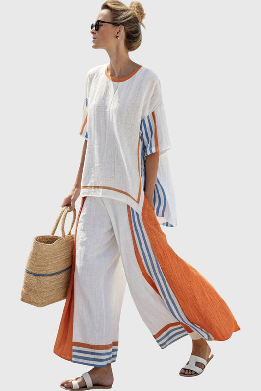 סט קיץ דו-חלקי עם טופ ומכנסיים רחבים - מראה אלגנטי ונינוח